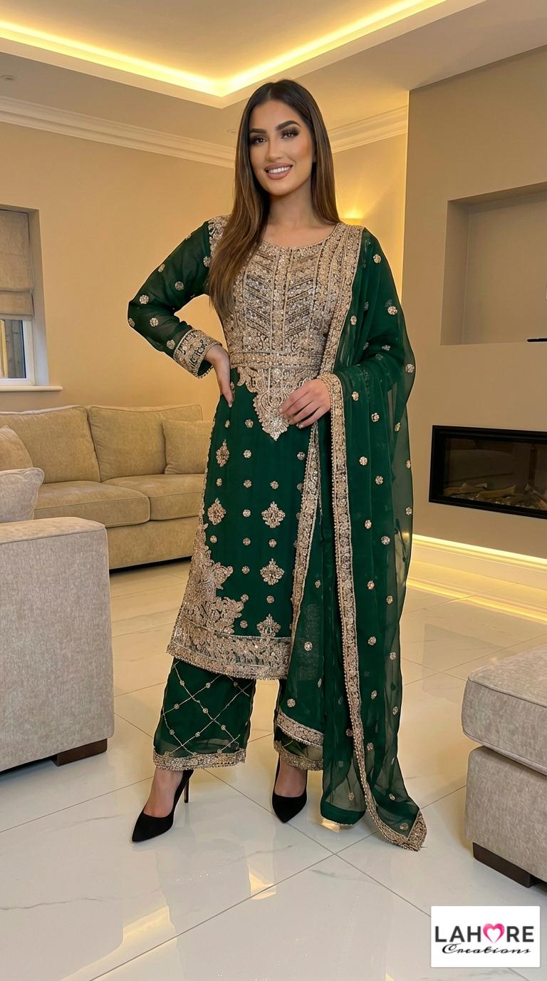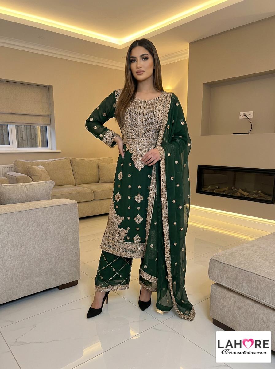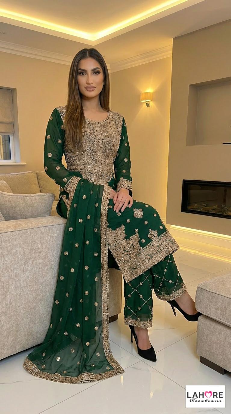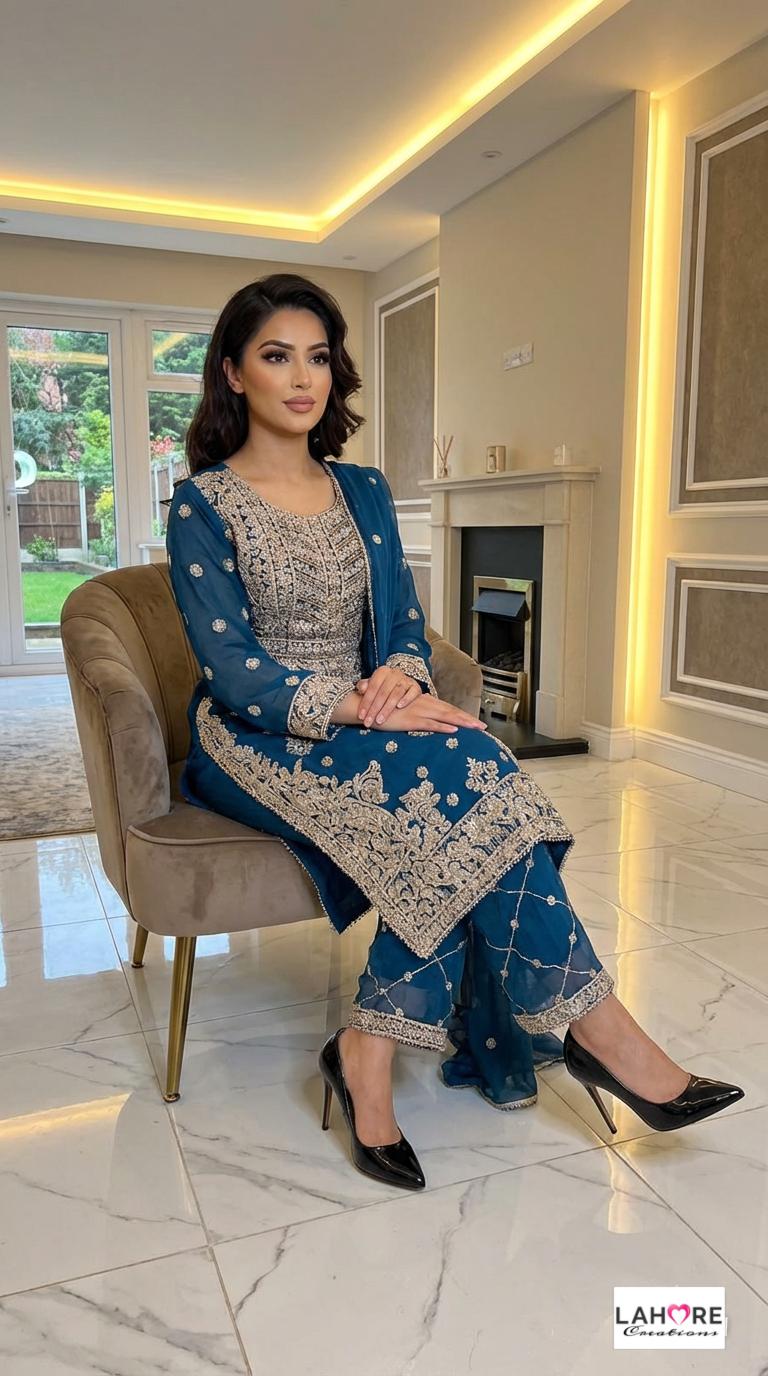 LEIYA is a luxurious and elegant Pakistani waist belt design which is made of pure chiffon with deep embroidered work & very heavy stonework that is perfect for any occasion.