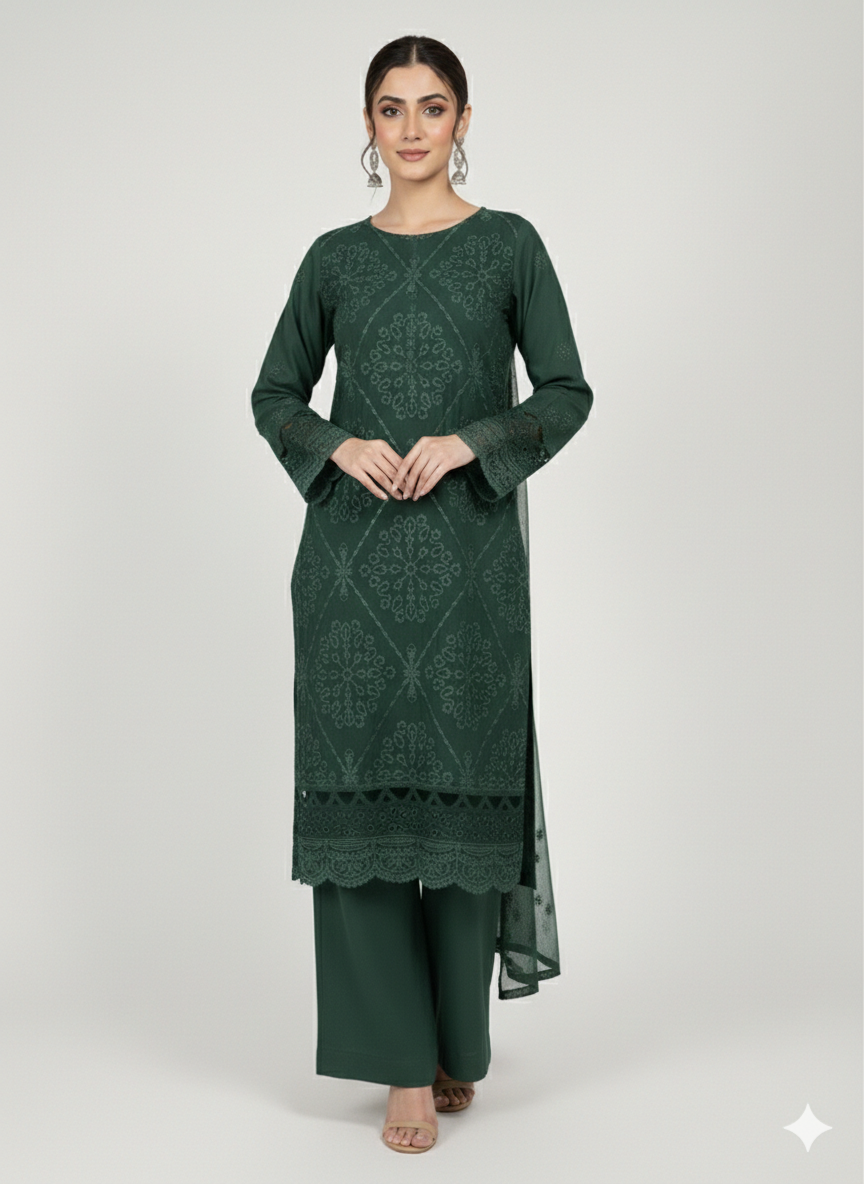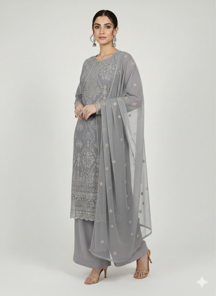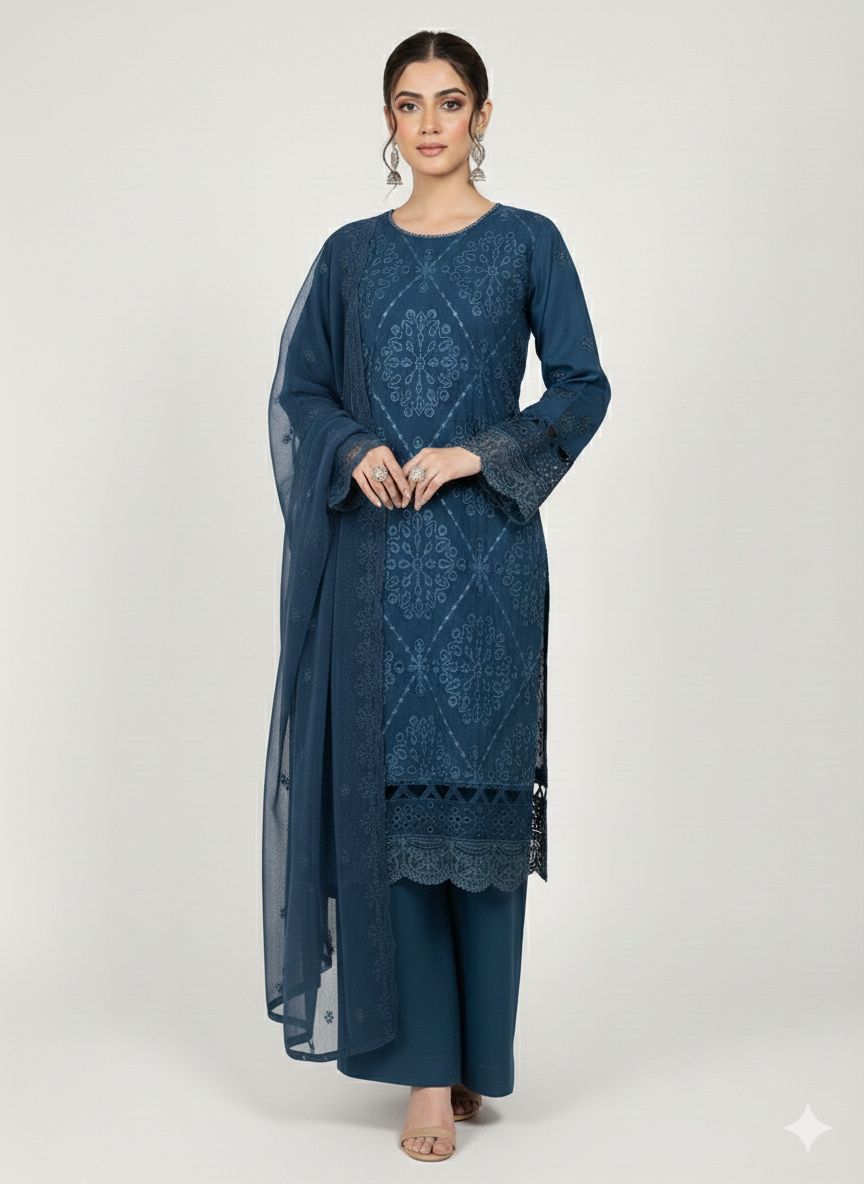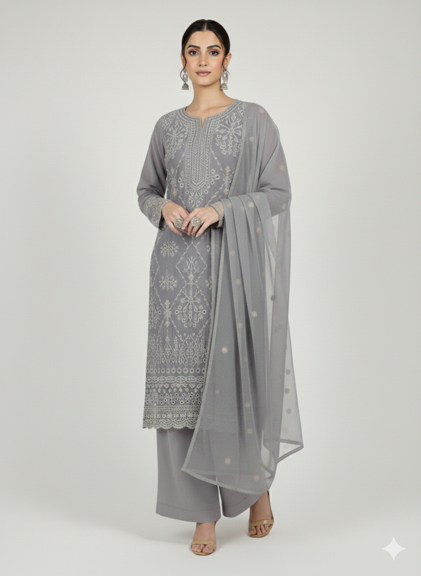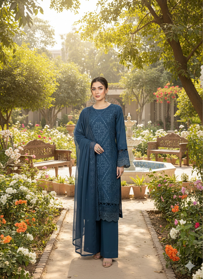 KHAIRUN is a luxurious and elegant Pakistani salwar kameez design made of high quality fabric with deep embroidered work that is perfect for any occasion.