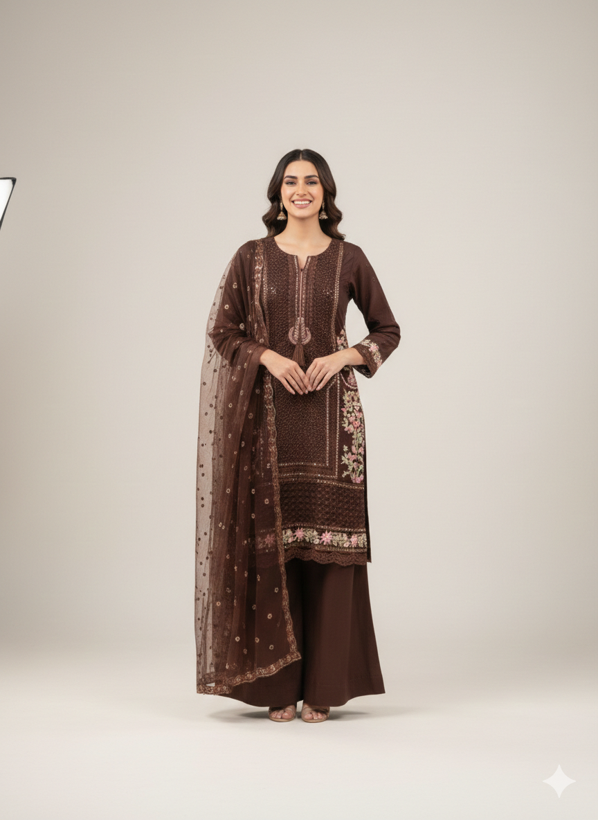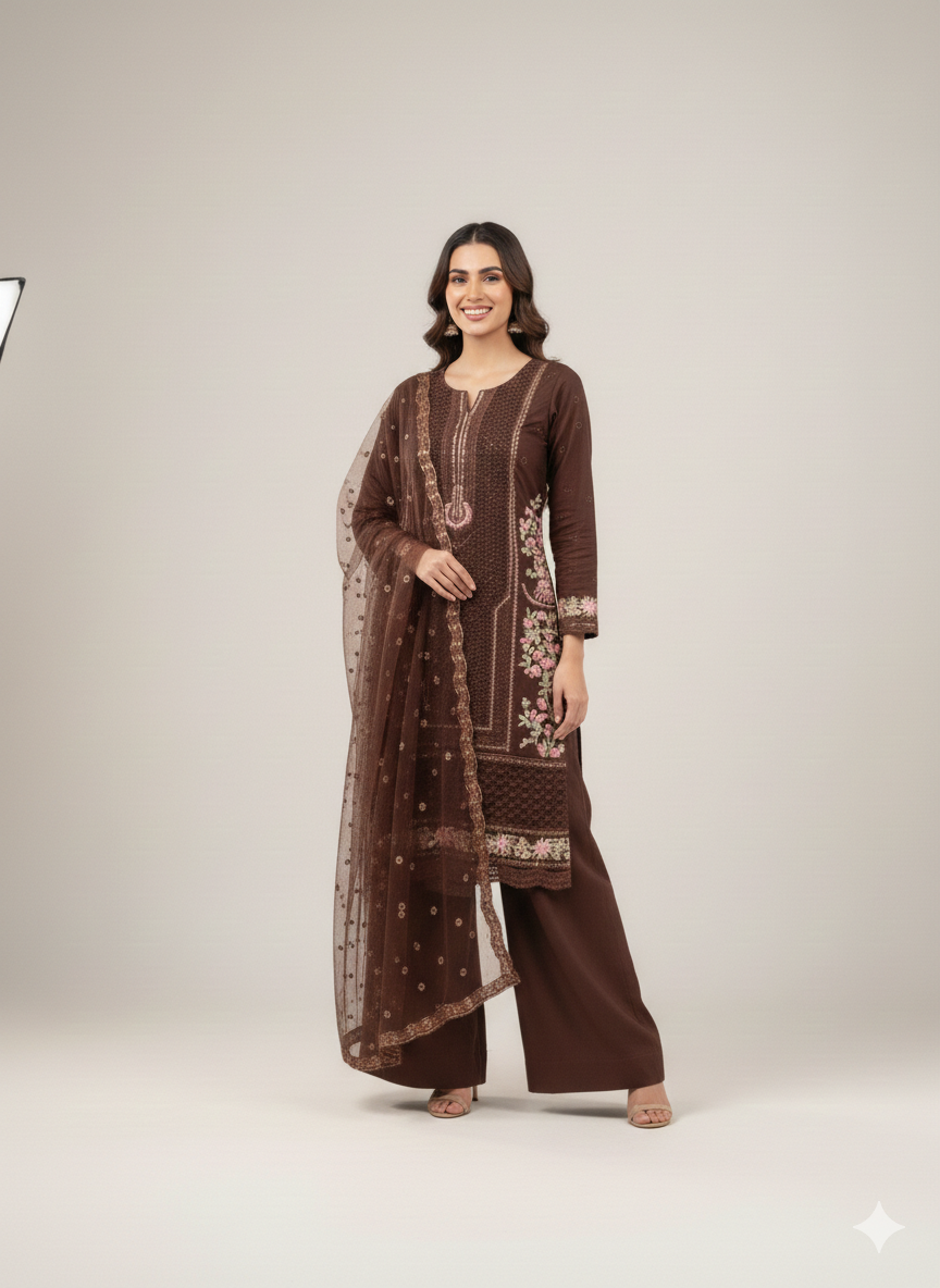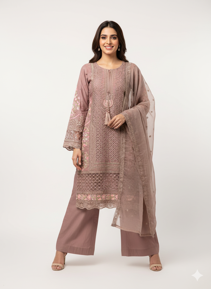 Nadorable is a luxurious and elegant Pakistani salwar kameez design made of high quality fabric with deep embroidered work that is perfect for any occasion.