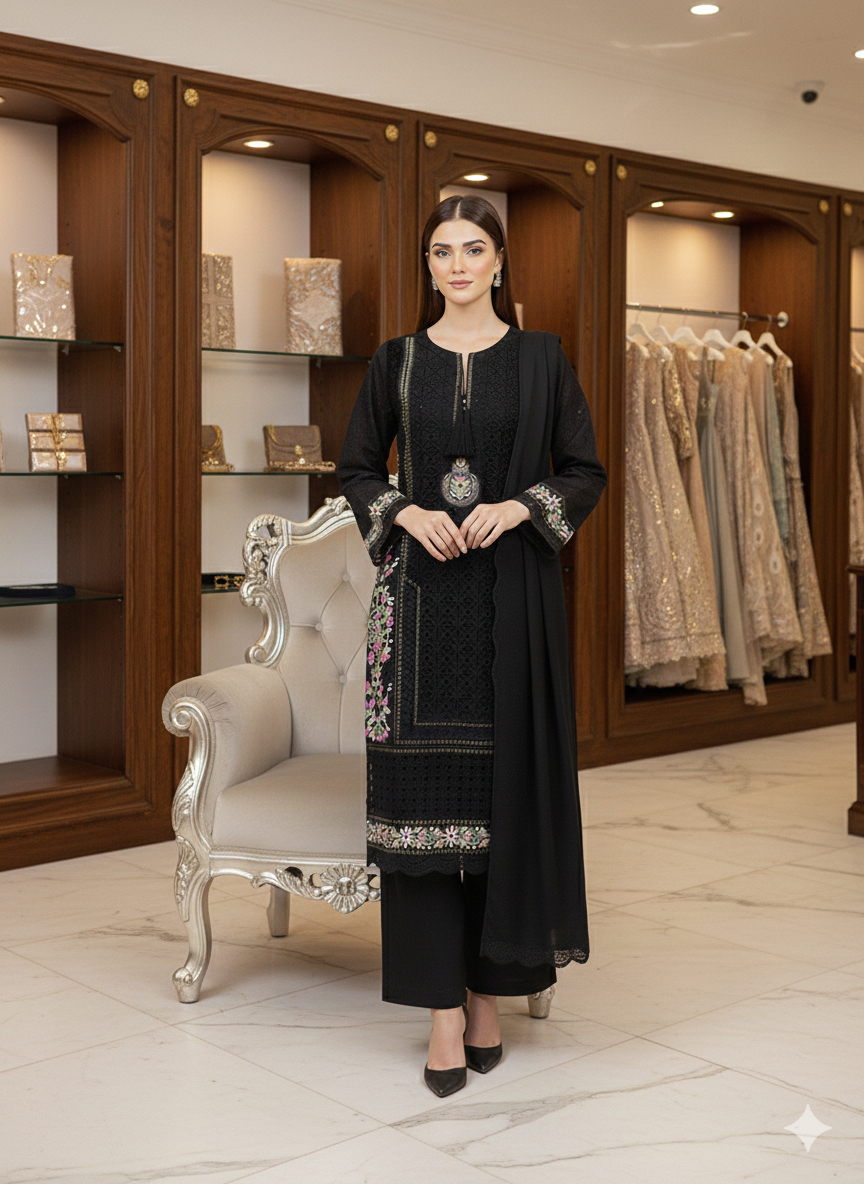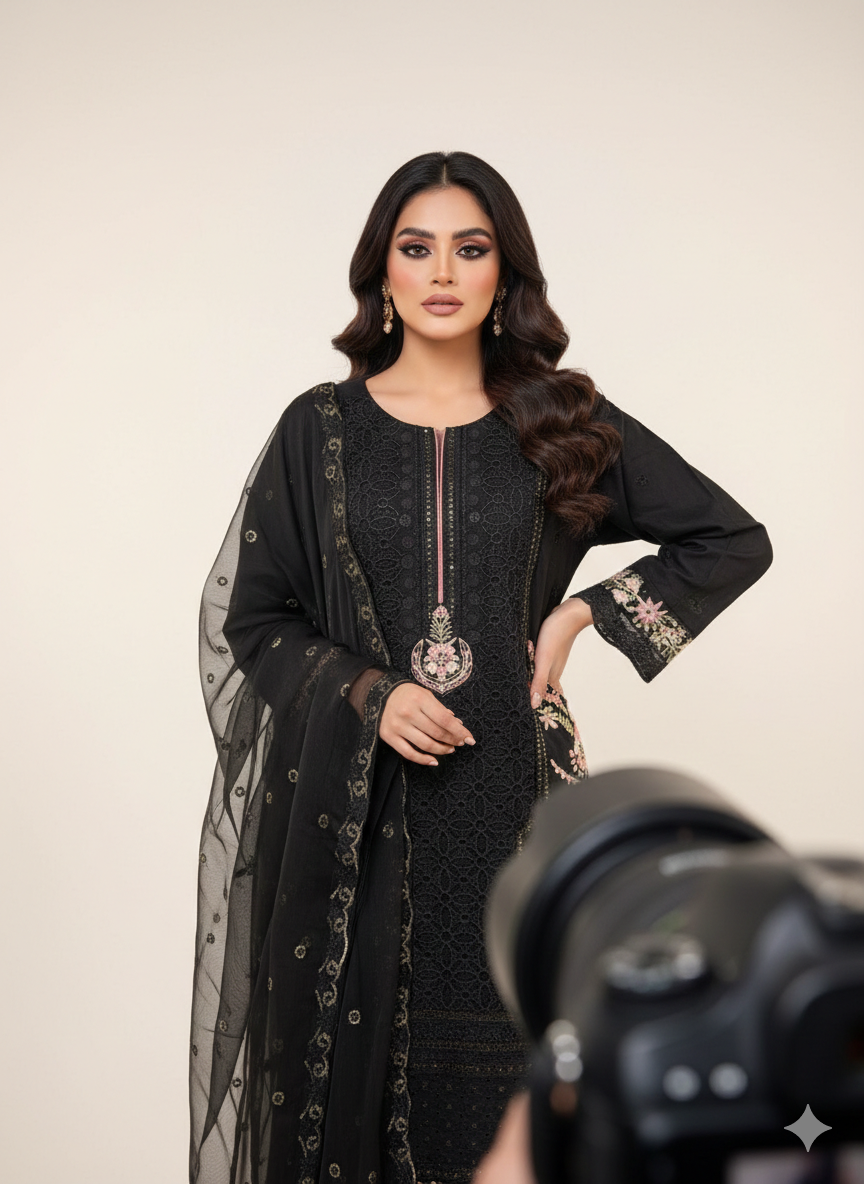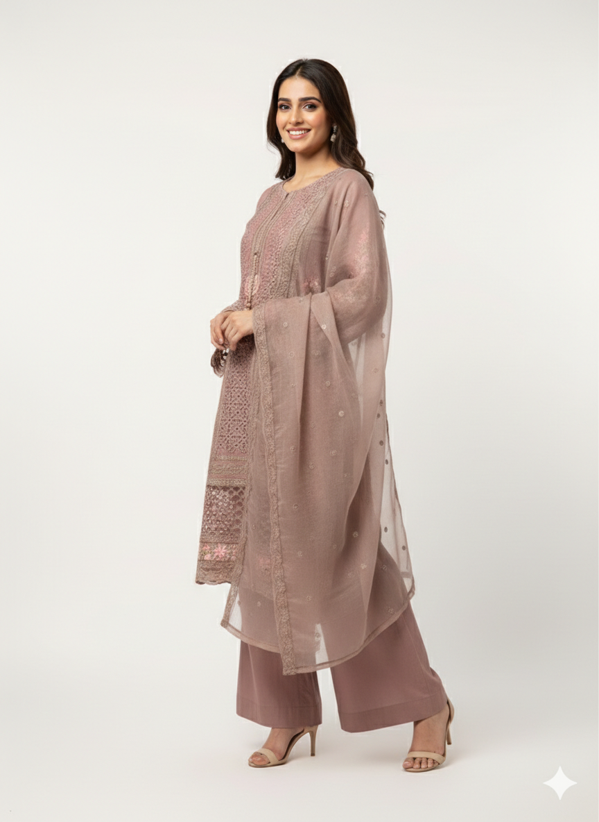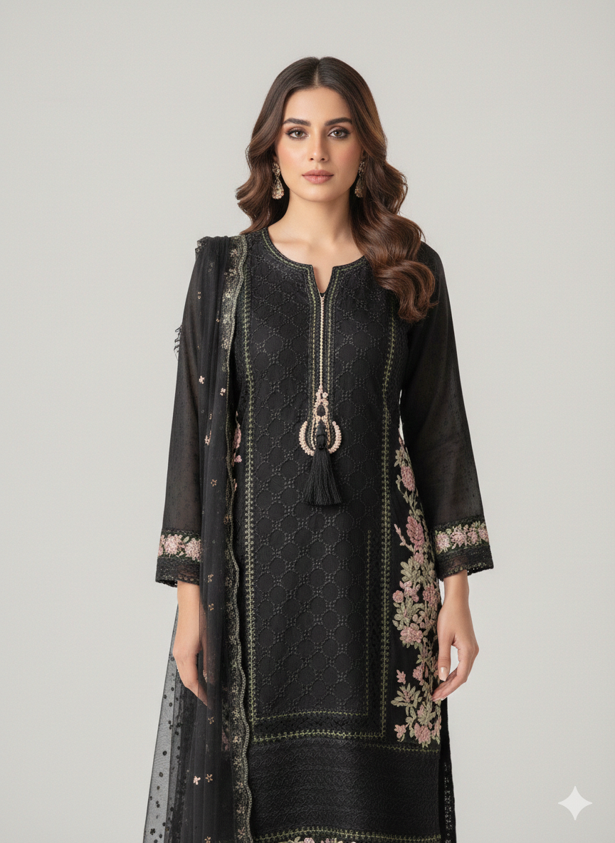 Nadorable is a luxurious and elegant Pakistani salwar kameez design made of high quality fabric with deep embroidered work that is perfect for any occasion.