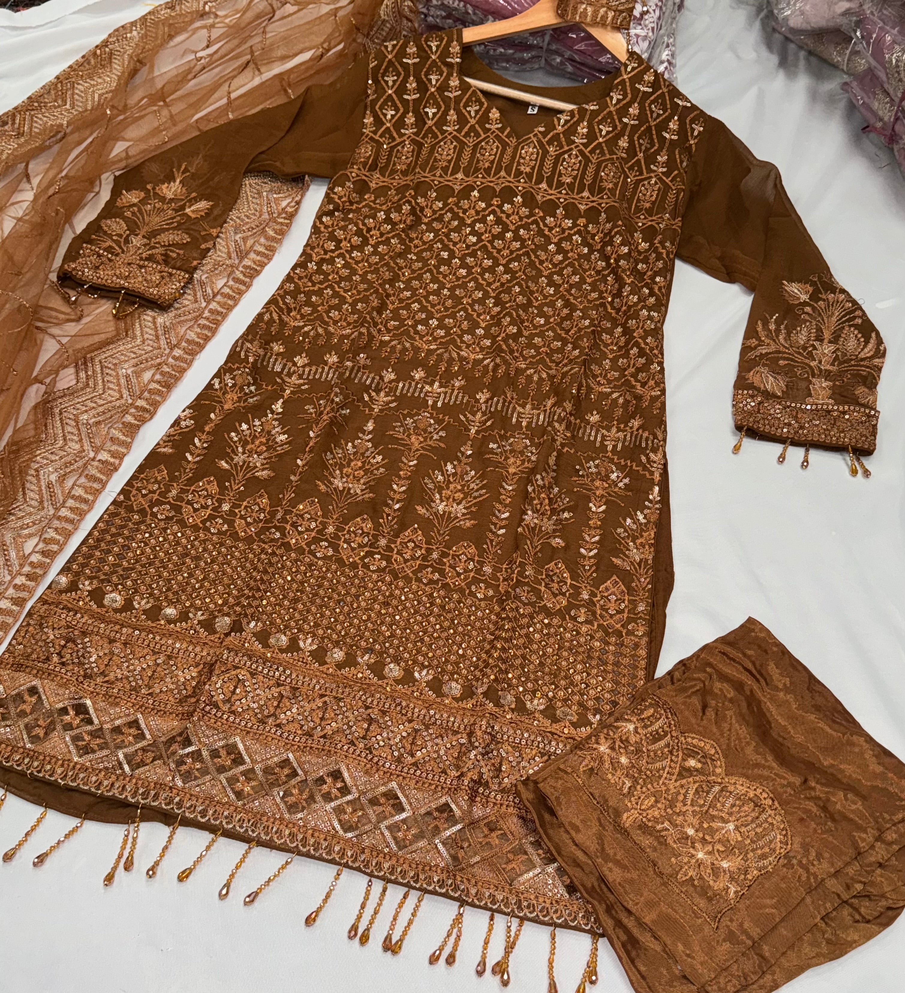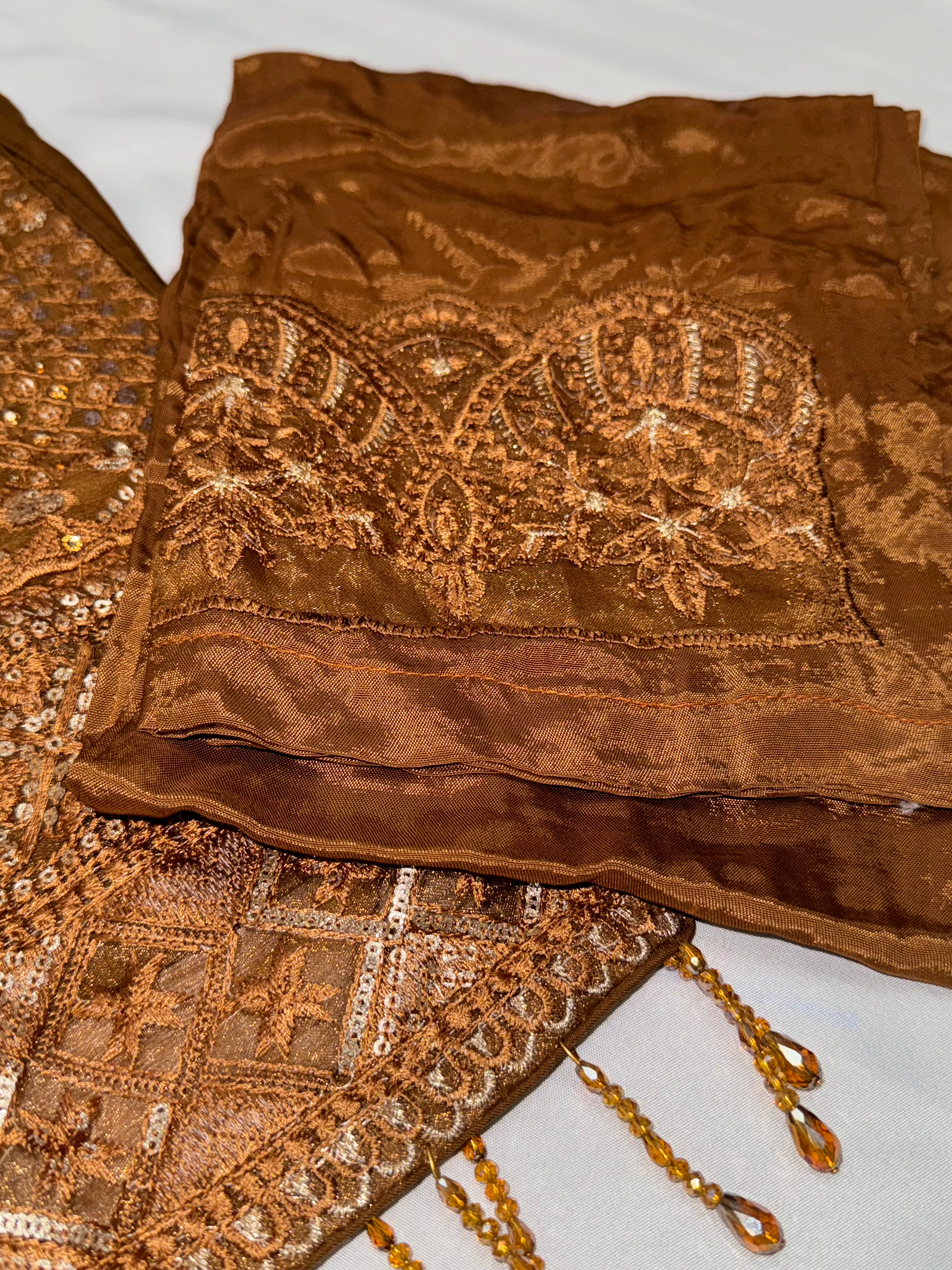 ISLA is a luxurious and elegant Pakistani contrasting salwar kameez design made of pure chiffon fabric with deep embroidered work that is perfect for any occasion.
